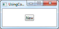 Enlazamos el comando en la Window, añadiéndolo a su colección CommandBindings. Especificamos el comando que queremos usar (el comando New contenido en ApplicationCommands), así como dos controladores de evento. La interfaz visual se compone de un único botón, al que asociamos el comando mediante la propiedad Command.