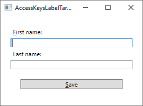 <Label Content="_First name:" Target="{Binding ElementName=txtFirstName}" />